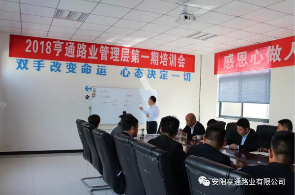 2018年4月18-20日,為加強公司管理隊伍建設(shè),增進中層間的相互交流,培養(yǎng)鍛煉團隊精神和協(xié)作意識,亨通路業(yè)全體中層從天南地北各個項目返回公司集中開展了為期三天的以“感恩心做人,責任心做事”為主題的專項培訓活動。